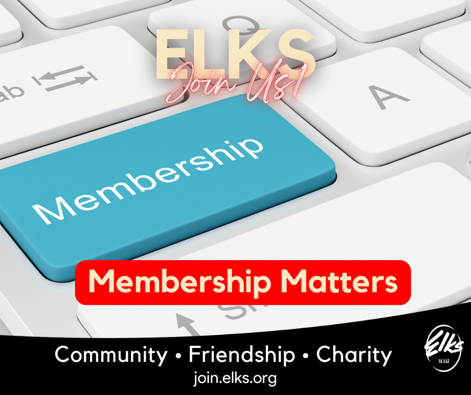 We can't do it without YOU- our members! Members are the key to the Elks continuing to have a successful club with all the dinners and daily hours of operation, as well as continuing to participate in all our community events, fundraising, and scholarship awards.